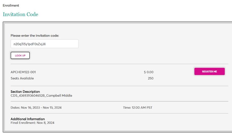 4. Copy and paste the invitation code provided by your school and click “Look Up”