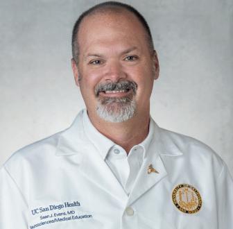 Sean Evans, MD, is the Associate Dean for Undergraduate Education and a board-certified general clinical neurologist with expertise in course design and implementation, examination content creation and assessment, and medical administration. He oversees the entire UC San Diego School of Medicine curriculum from matriculation to graduation.