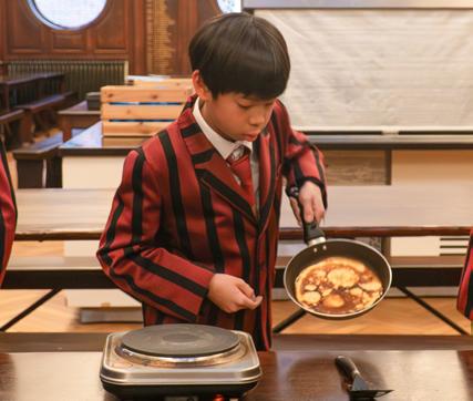 Chef Terri wowed competitors with his handling skills of the crepe pan and then handed over the reins to 60 highly excitable Lower School pupils. Batter was spilt, pancakes were tossed, new flavour combinations were created, and several hours later, Bannister were