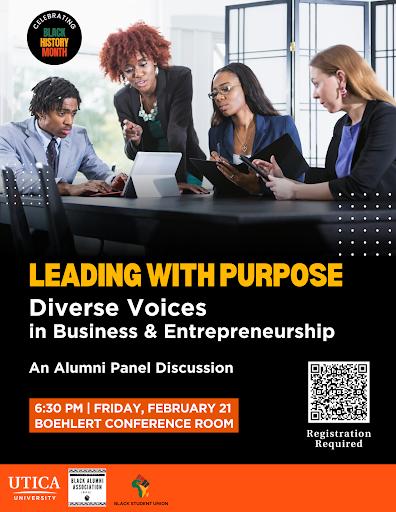One of the events held on campus included “Leading with Purpose: Diverse Voices in Business & Entrepreneurship” that was held on Feb. 21 and included an alumni panel discussion. This event was sponsored by the offices