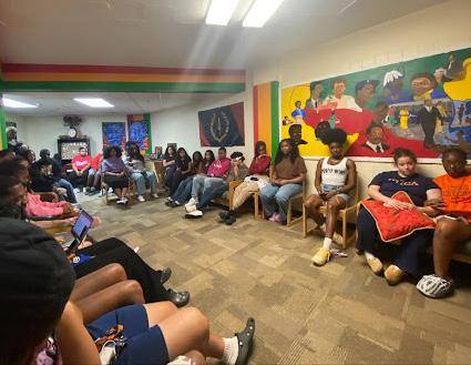 Members of the Black Student Union attend a meeting in the North Hall basement. Photo courtesy of Elijah Faucette.