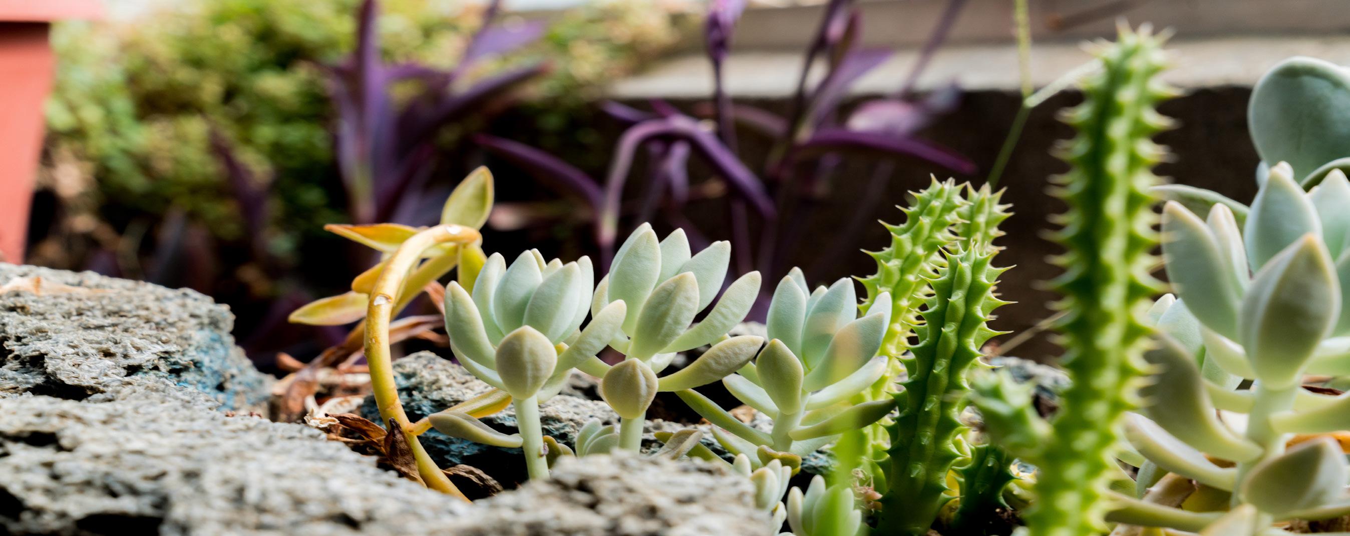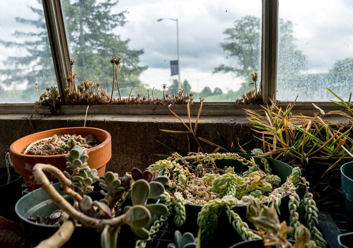 Succulents occupy a significant amount of space along the left side of the greenhouse.