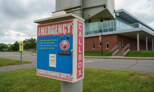 The blue lights system is a strategic safety resource that allows students to get in contact with Campus Safety in the event of an emergency. Campus Safety will be alerted when the blue light system is activated and students will get immediate assistance.
