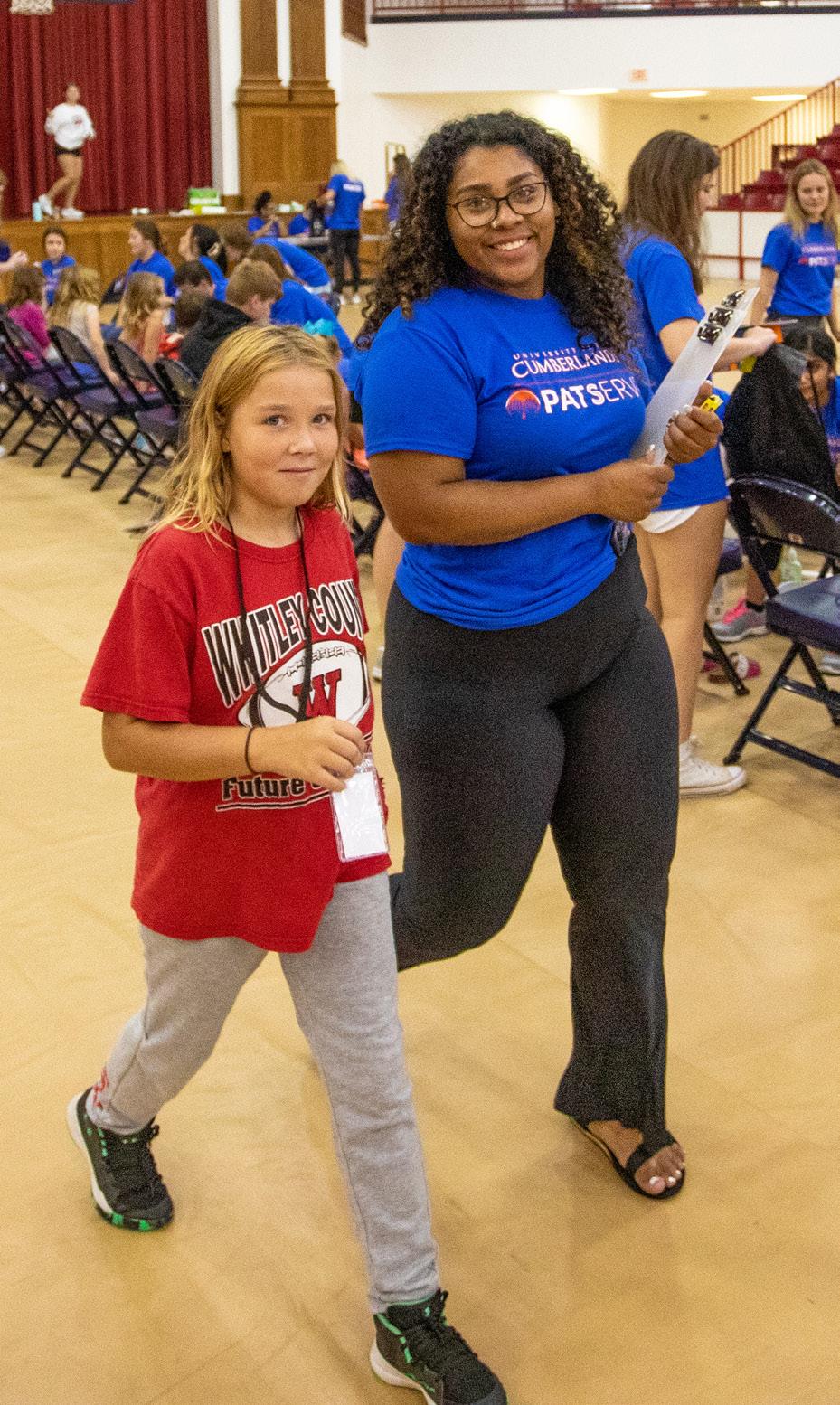 their “buddy” for the next hour or so. Buddies talked and laughed with the children while leading the kids through the gym to the foot washing stations, where volunteers washed the kids’ feet before handing them clean socks and a new pair of shoes, plus a Cumberlands t-shirt and various personal hygiene items.