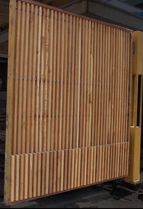 Gate is Designed with Pine Wood and Mild Steel There are 2 gate panels, Each Panel Weighted 150 Kilograms.