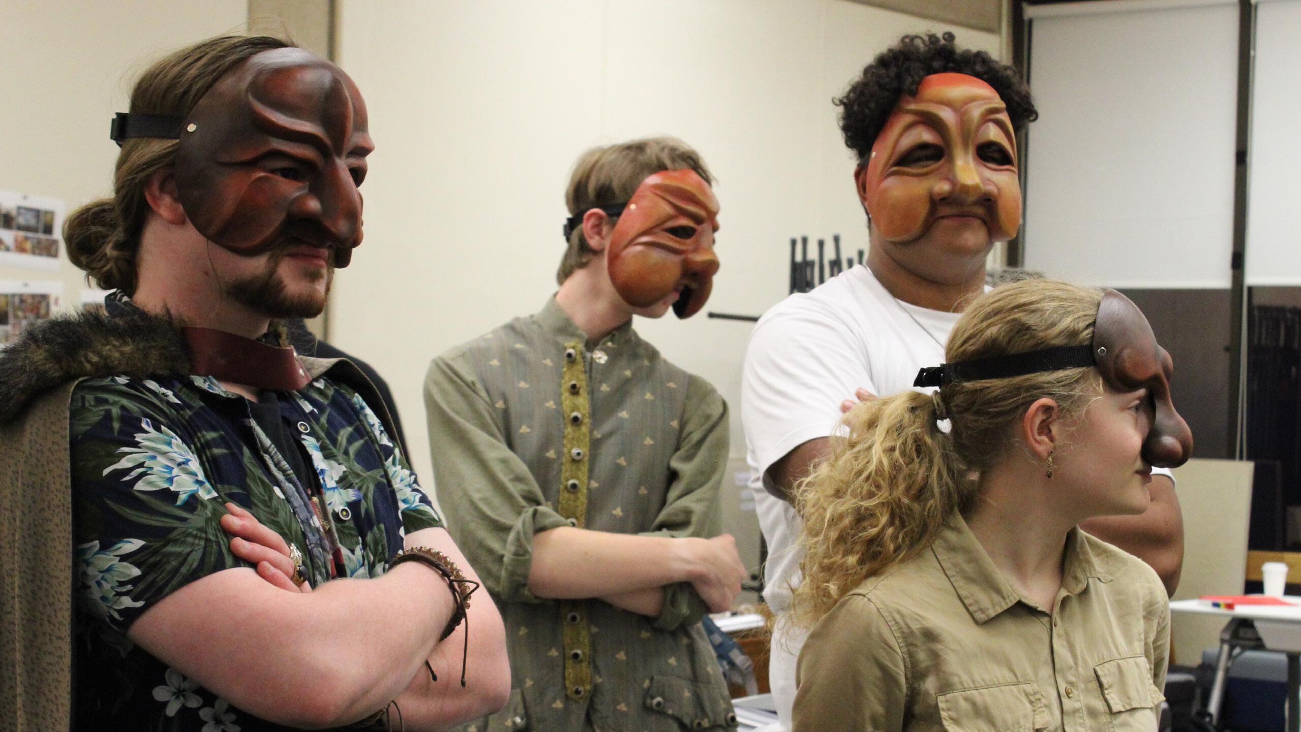 The Drama Department purchased masks from Jonathan Becker of Theater-Masks.com, an American mask maker, known for his contributions to the theatrical arts. Becker is the founder of the North American Laboratory for the Performing Arts, and he is the co-founder of both Switzerland’s Les Senokrates theater company and Paris’ The Brodeur Brothers. According to his website, his masks are made of painted neoprene, a latex compound estimated to last between 250–300 performances whereby the masks undergo tough usage. Director Lemieux explained: “[W]e wanted to ensure that the department can make use of them in the future.”