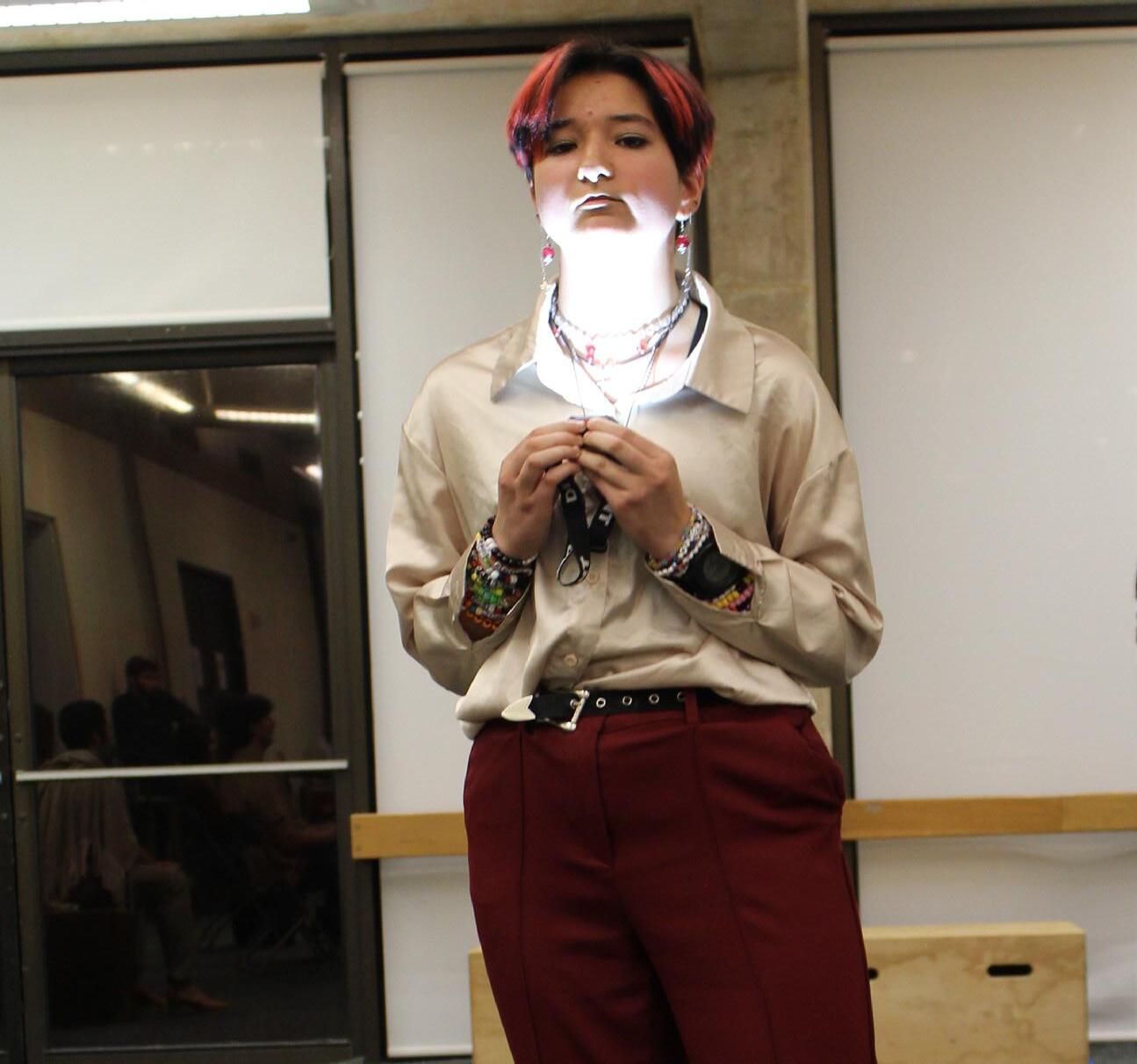JP: My name is Jace Petrutsas, a freshman drama major. I play Lysander, and my character wants a relationship with Hermia. He’s kind of bigheaded, real sure of himself. He’s like, why wouldn’t Hermia want to be with me?