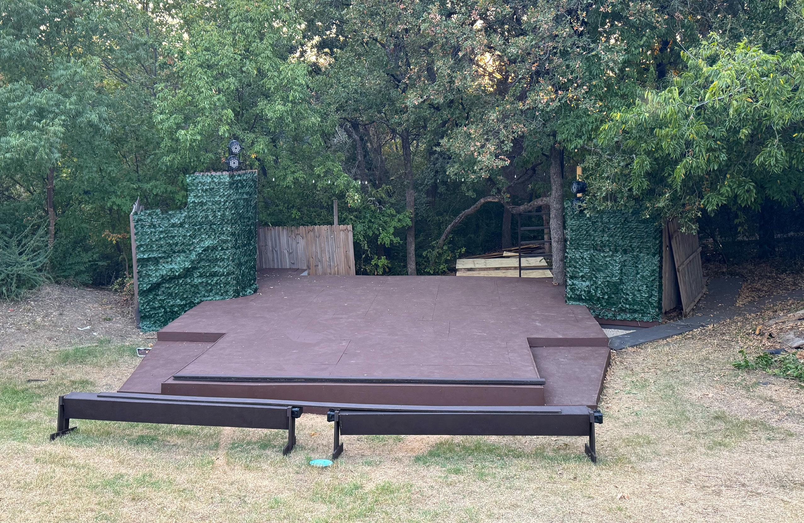 Since the production is entirely outside, large, construction-grade extension cords provide the power. Despite its natural setting, this production of Midsummer uses plenty of electricity, including lights and sound. The crew utilizes more than just artificial light, however. An evening showtime is key to the production’s visual aspect, as the performance starts while the sun is setting and concludes by the time the moon is out. Thankfully, in late October, the weather is much nicer than in the summer, which makes an outdoor performance in Texas a pleasant and enjoyable experience.