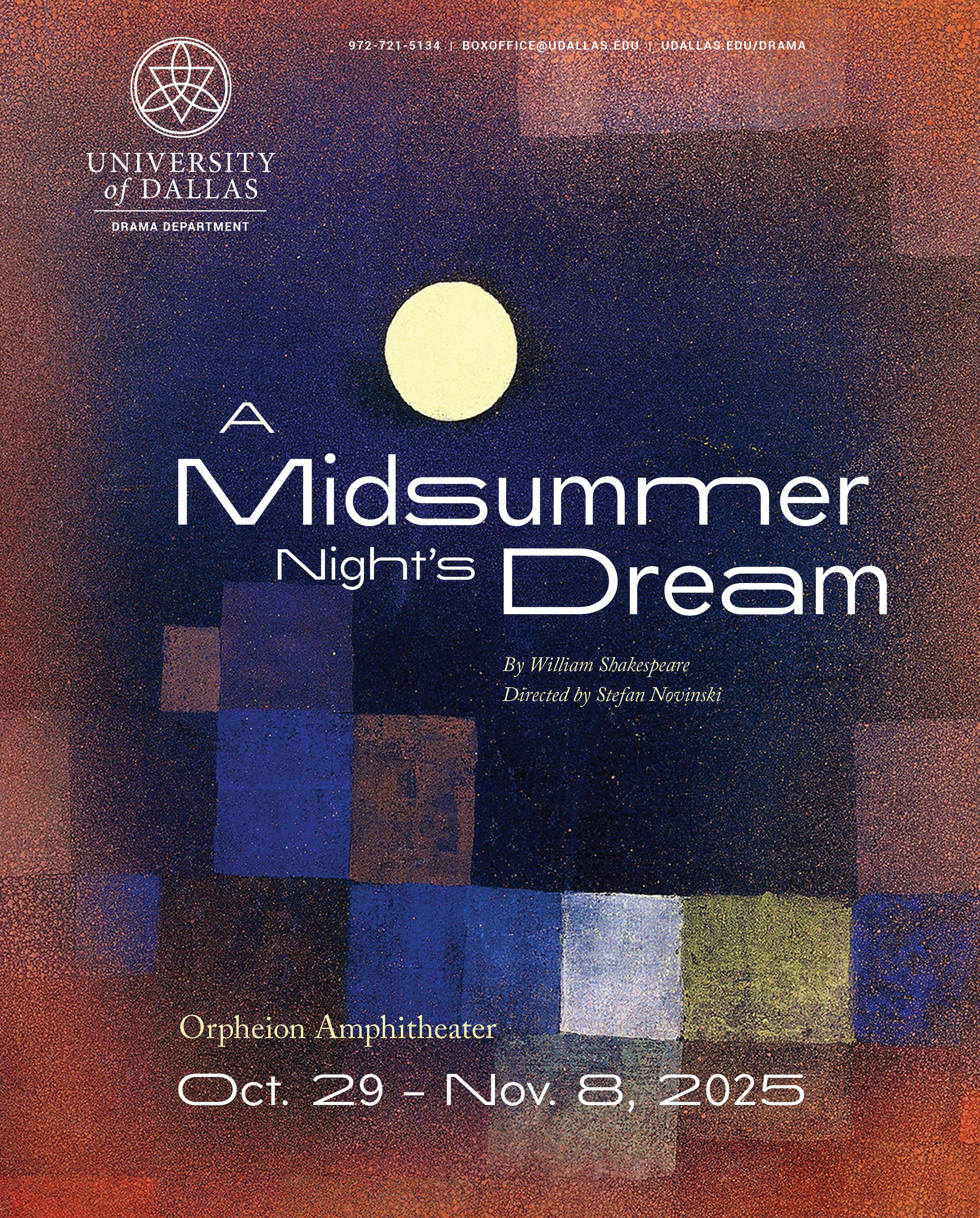 This fall, our Mainstage production is William Shakespeare’s A Midsummer Night’s Dream, directed by Prof. Stefan Novinski. I remember having a conversation with another director back in 2009 about A Midsummer Night’s Dream. He said, “Well, you know, there are only a few perfect plays, and Midsummer is one of them.” I think he was right. Certainly Shakespeare’s—and perhaps the world’s—most performed play, A Midsummer Night’s Dream is universally enjoyed by children and adults. Why might this be? After all, a play containing fairies of the wood from Shakespeare’s imagination seems to have little to do with our everyday life. Perhaps this dissimilarity might be, in part, exactly why. Plays allow us, through the safety of the fiction of storytelling in a group, to engage with the wonder and beauty of the world. Often this wonder can, if I may borrow an image from the play, bloom like a flower when activated by plays like Midsummer, which live beyond our prosaic everyday. A Midsummer Night’s Dream is one of those magical plays that invites us to see the world with wonder and allows us to dream new possibilities into reality. Together.