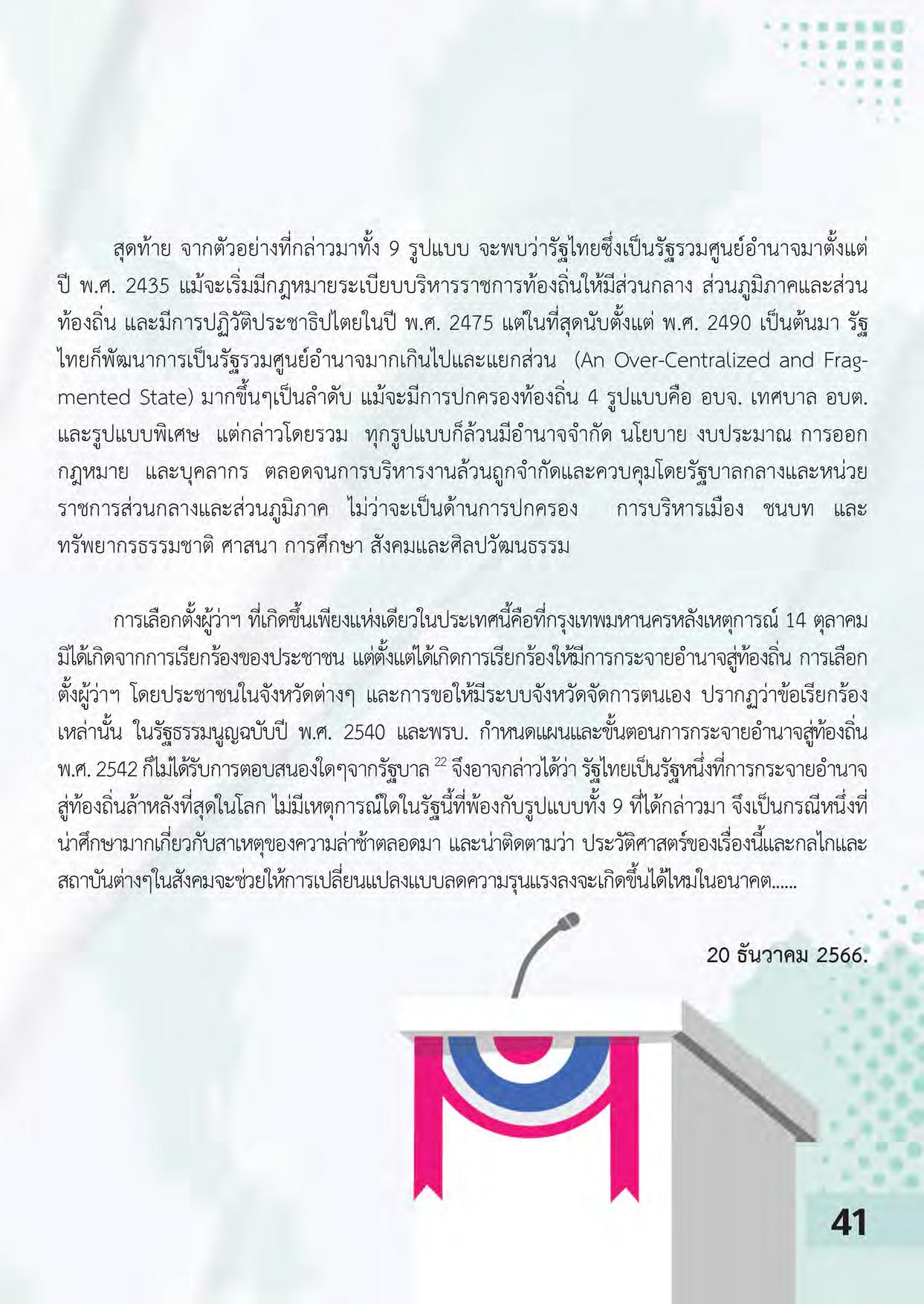 กล่าวในเชิงภาพรวม การกระจายอำนาจสู่ท้องถิ่น (Decentralization) กับการปกครอง