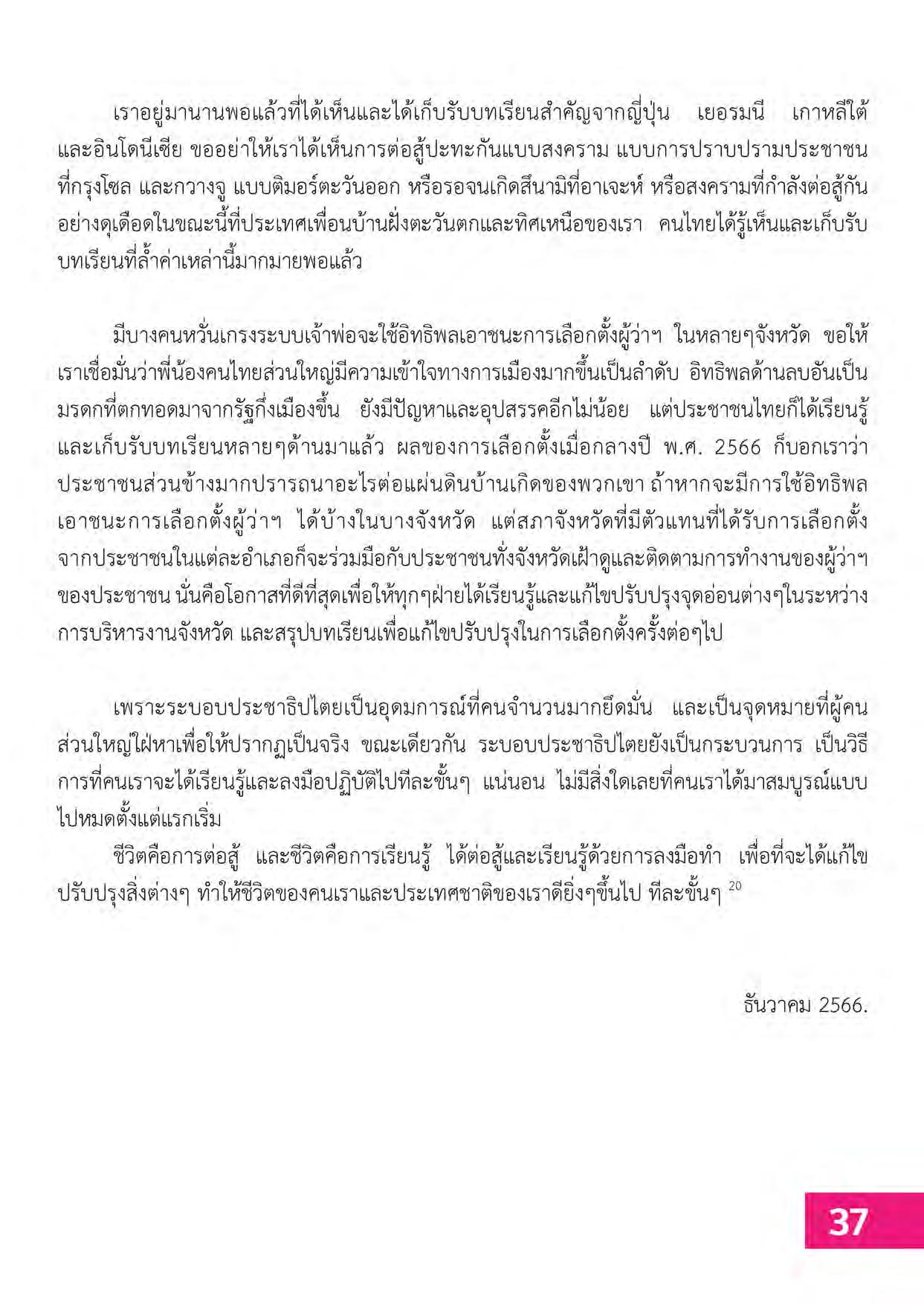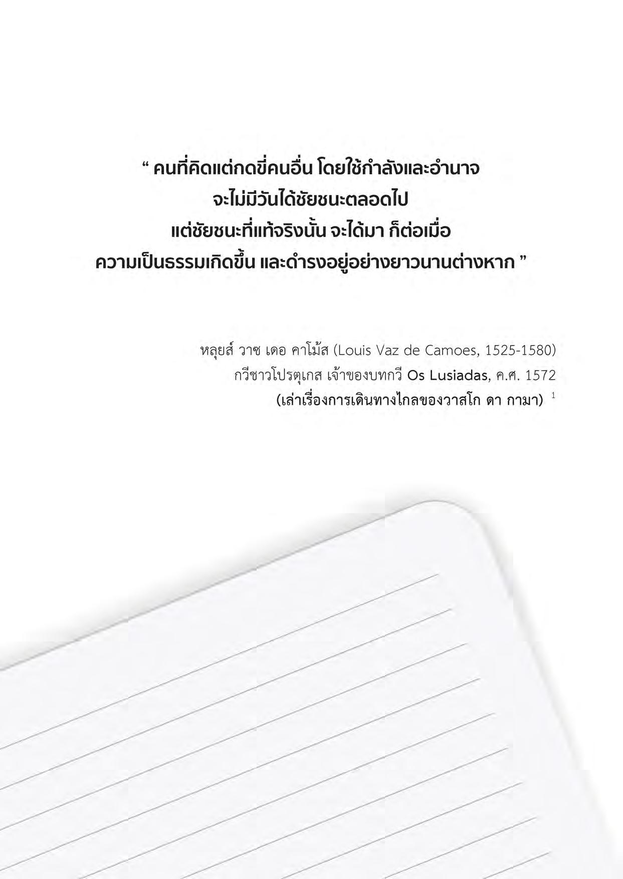 “คนที่คิดแต่กดขี่คนอื่น โดยใช้กําลังและอำนาจจะไม่มีวันได้ชัยชนะตลอดไป แต่ชัยชนะที่แท้จริงนั้น จะได้มา ก็ต่อเมื่อ ความเป็นธรรมเกิดขึ้น และดำรงอยู่อย่างยาวนานต่างหาก”