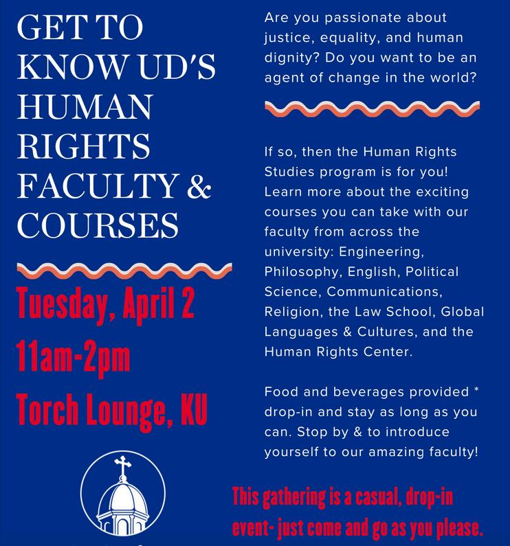 The program will emphasize faculty scholarship and pedagogical skills over the coming year. We may implement a pilot program for an interdisciplinary faculty colloquium on research related to human rights, primarily drawing on faculty from UD. Based on interest, we’ll convene a faculty & staff book discussion group on a short book titled “Building Community in Online Courses.”