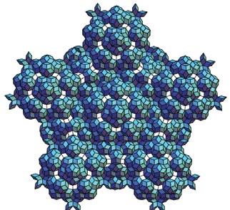 Al iniciar este proyecto los artistas islámicos nos estaban conduciendo a encontrar una nueva forma de la materia: los cuasicristales, los cuales tienen simetrías que antes se consideraban «prohibidas», como la pentagonal, y que tienen gran dureza y alta resistencia al calor, además de asemejarse a proyecciones de cristales que «viven» en dimensiones mayores a la tercera (Romero-Meléndez y García de la Parra, 2017). Las teselaciones del plano fueron trabajadas por personajes como: Alberto Durero (1471-1528), Johannes Kepler (1571-1630), Maurits Escher (1898-1972) y Roger Penrose (1931- ) (Križek, Solc y Solcová, 2012). Durero y Kepler utilizaron pentágonos, entre otras figuras, en sus diseños que intentaban llenar el plano, y es Kepler quien clasificó todas las formas de llenar el plano con figuras geométricas regulares convexas.