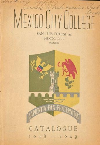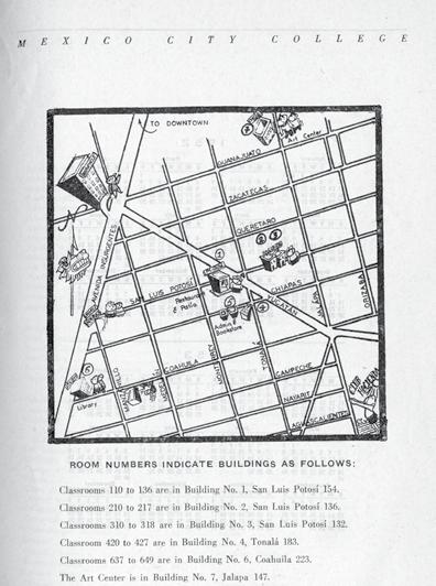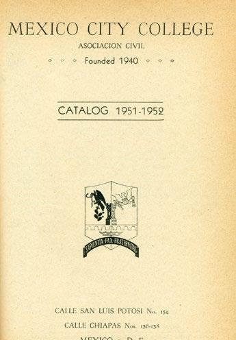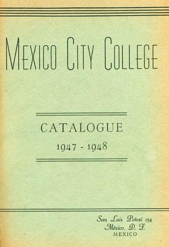 1 En el anuario de 1947 se afirma que el college inició clases en Tacubaya Núm. 40 con cinco alumnos, mientras que en publicaciones institucionales posteriores a 1950, mencionan que las clases comenzaron en un salón de la American School Foundation con seis alumnos. Se tomó la primera referencia por ser la más cercana a la fundación del Mexico City College.