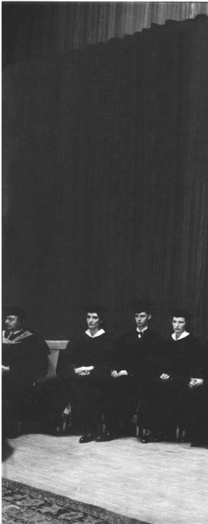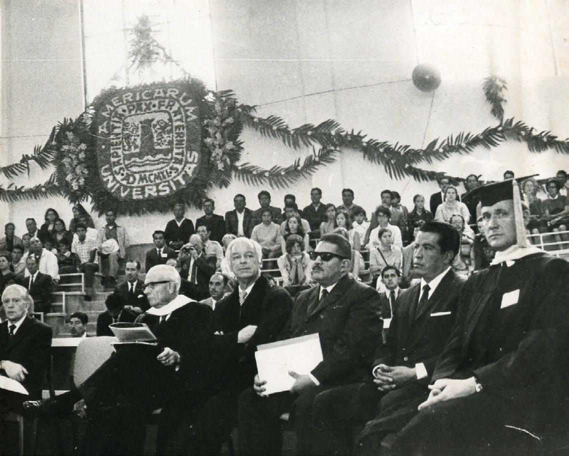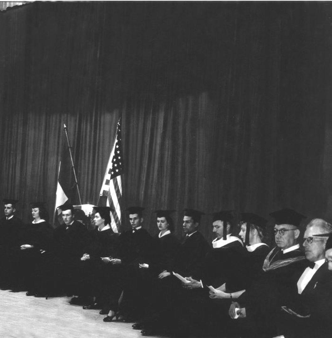 el grupo de teatro, otro en donde se organizaban viajes para conocer México y un tercero, para discutir y conversar sobre los problemas internacionales. También se instauró un comité de actividades estudiantiles conformado por ocho estudiantes quienes, junto al decano Murray, organizaron eventos sociales y actividades extra curriculares. Evidentemente, la primera graduación contribuyó, de gran manera, a crear ese sentido de pertenencia y amor a la institución. Ésta tuvo lugar el 27 de junio de 1944, en el auditorio Lewis Lamm de la asf. Se entregaron de manos del rector Cain doce diplomas, ocho en Associate in Arts a Helen Scott Gilland, Mary Gilland, Josefina García Colín, Mary Gisholt, Thomas Koralek, Fernando Peñalosa, Leonore Ross y William Valverde; y cuatro en Associate in Science a Guillermo Ahumada, Elaine Roslyn Gladston, Gilbert Haakh y Lavern A. Miller. Durante la ceremonia, como lo marca la tradición académica, Guillermo Ahumada, el alumno más destacado de la generación, fue el encargado de pronunciar las palabras de despedida ante sus compañeros de clases, seguido por el discurso del decano Murray titulado