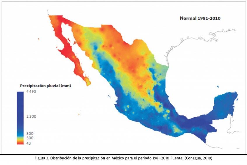 Figure 3. Distribution of the presipitation in Mexico for the period 1981-2010. Funte: Conagua, 2018.