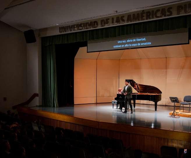 El concierto Sueño de una noche de verano reunió a músicos y compositores alemanes, españoles y franceses, así como a Cristina Nakad, Tadao Hermida Ito, Leonardo Sánchez y Abraham Morales, egresados de Música y Teatro de la UDLAP, quienes brindaron un concierto que mostró el gran talento que caracteriza a cada uno.