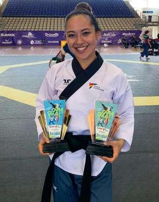 Ana Zulema Ibáñez, egresada de la Licenciatura en Arquitectura de Interiores, conquistó el primer y tercer sitio del pódium en el Campeonato Nacional de Poomsae Guadalajara 2023.