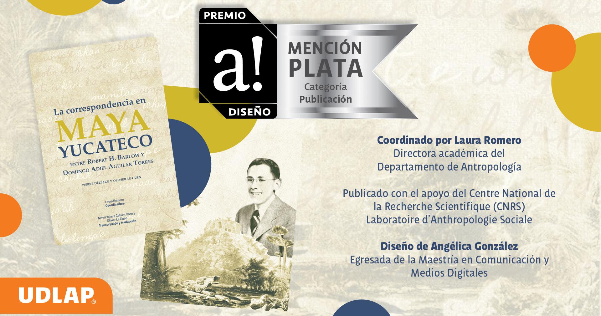 El libro La correspondencia en maya yucateco entre Robert H. Barlow y Domingo Adiel Aguilar Torres, editado por la UDLAP, y los proyectos de identidad Los Talleres y Amourphoses, presentados por Daniela Palomas Vélez, Mónica Romero Sánchez, Alejandra Rodríguez Woo y Luis Fernando Salazar Herrera, estudiantes de la Licenciatura en Diseño de Información Visual, recibieron Mención Plata en la edición 2023 del Premio a! Diseño