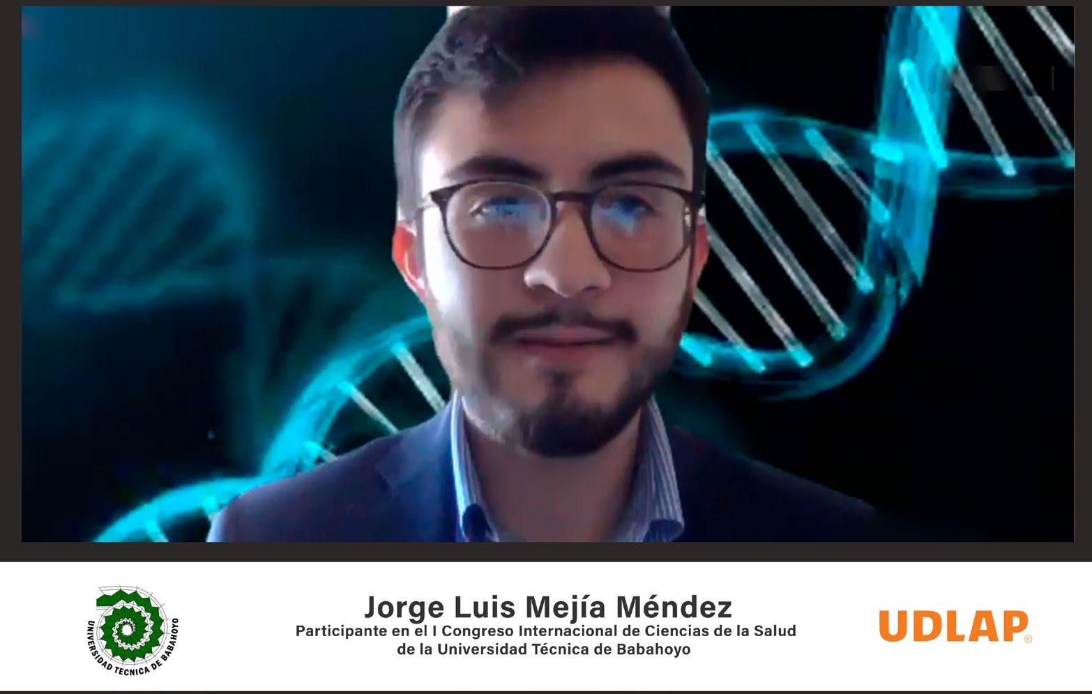 Jorge Luis Mejía, candidato a doctor en Biomedicina Molecular por parte de la UDLAP, fue invitado a participar como ponente en el Primer Congreso Internacional de Ciencias de la Salud, organizado por la Universidad Técnica de Babahoyo, Ecuador