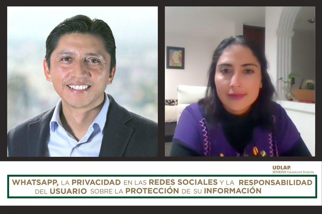 A través de la UDLAP Jenkins Graduate School, se realizó el webinar: «WhatsApp, la privacidad en las redes sociales y la responsabilidad del usuario sobre la protección de su información», a cargo de la Dra. Zobeida J. Guzmán y el Mtro. Ernesto Ibarra.