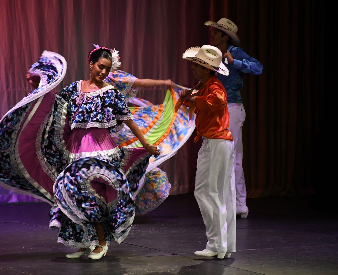 El Auditorio Guillermo y Sofía Jenkins fue sede de «Entre olanes y gabanes», muestra de danza y música folclórica mexicana que, con fuerza, júbilo, movimientos y colores, creó un espectáculo de cuadrillas, chotis, redovas y polkas de Chihuahua, sones de mariachi y sones de tambora sinaloense.
