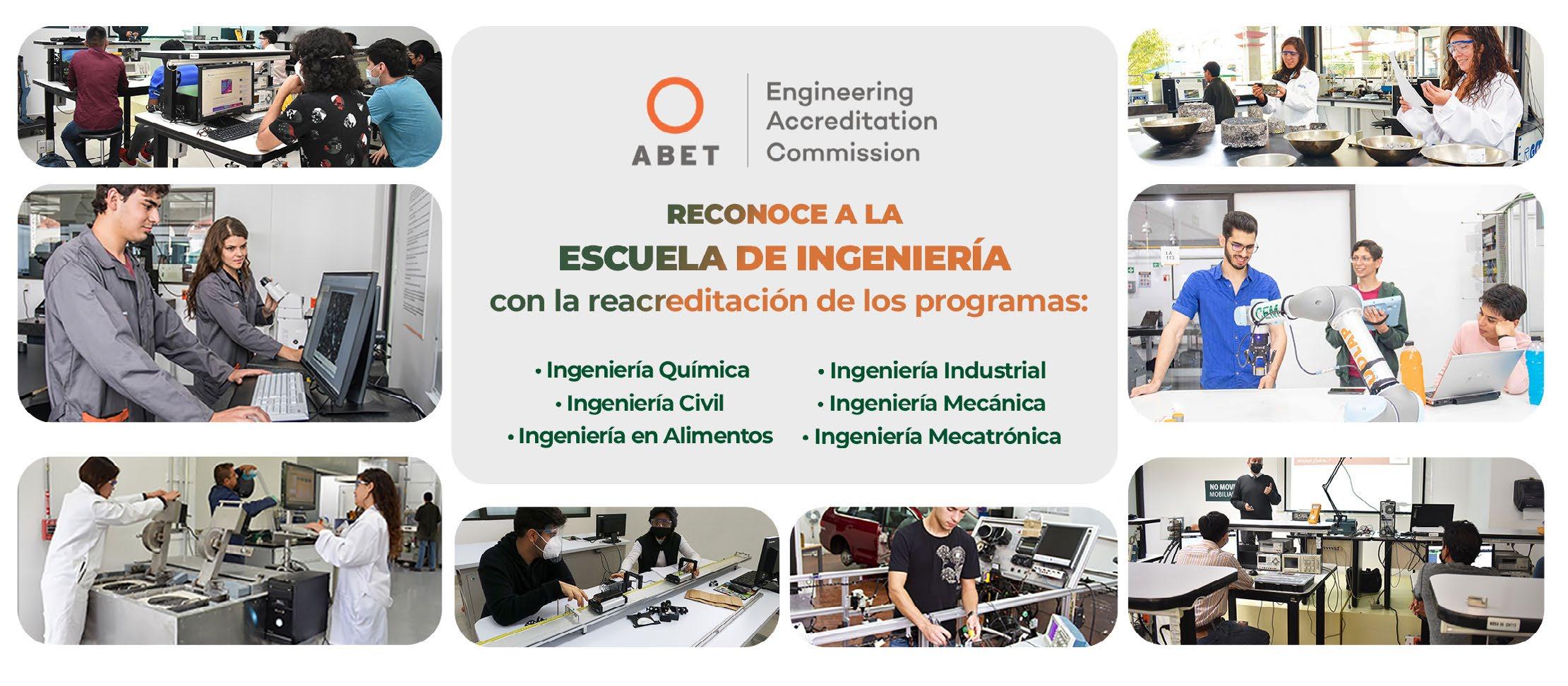 Seis programas académicos de la Escuela de Ingeniería fueron reacreditados por la Engineering Accreditation Commission de ABET, la acreditadora académica internacional más importante en el terreno de la ingeniería y la tecnología, con lo que se reconoce la calidad de los programas de ingeniería de la udlap y su competitividad internacional.