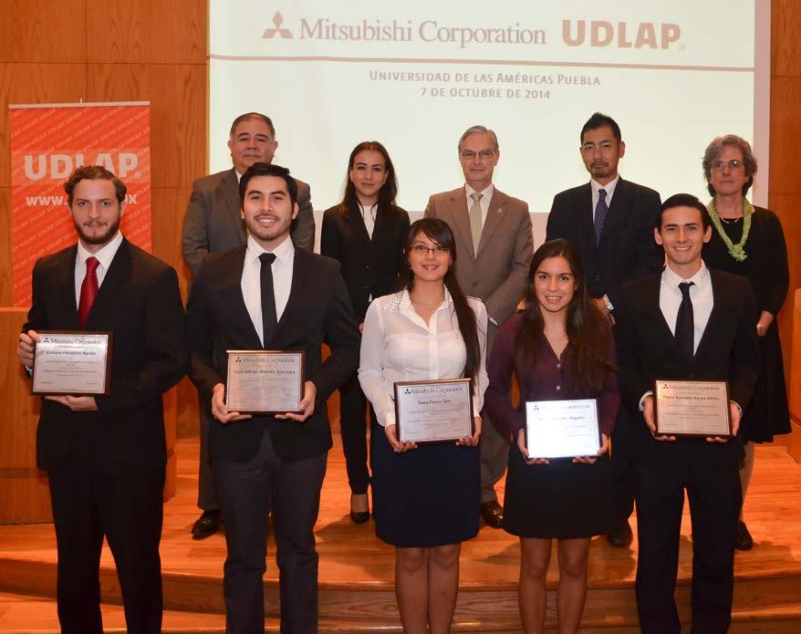 Natalia Rosales, de la Licenciatura en Ingeniería Mecatrónica; Tania Paulina Flores, de la Licenciatura en Idiomas; Enrique Hinzpeter de la Licenciatura en Diseño de Información Visual; Pedro Salvador Amaro, de la Licenciatura en Nanotecnología e Ingeniería Molecular y Luis Adrián Jiménez, de la Licenciatura en Administración de Negocios Internacionales; son los estudiantes que obtuvieron la Beca UNE Corporativa Mitsubishi