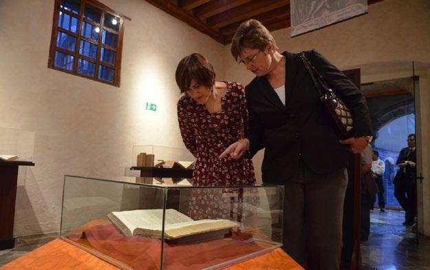 116. Se inauguró la exposición «Libros bilingües y multilingües: historia y usos»; dieciséis obras de la Biblioteca Franciscana de los siglos xvi al xix en latín, náhuatl, griego, castellano, francés, italiano, inglés y árabe. Y, en el mismo recinto, a través de la exposición fotográfica «Rescate del Portal de Peregrinos», se presentó la labor realizada durante los últimos años para la conservación y valorización de la Biblioteca Franciscana del Convento de San Gabriel, en San Pedro Cholula. Además se rescató y presentó, en el claustro de la Biblioteca, una de las zarzuelas de mayor tradición: La Dolorosa, con música de José Serrano y letra de Juan José Lorente