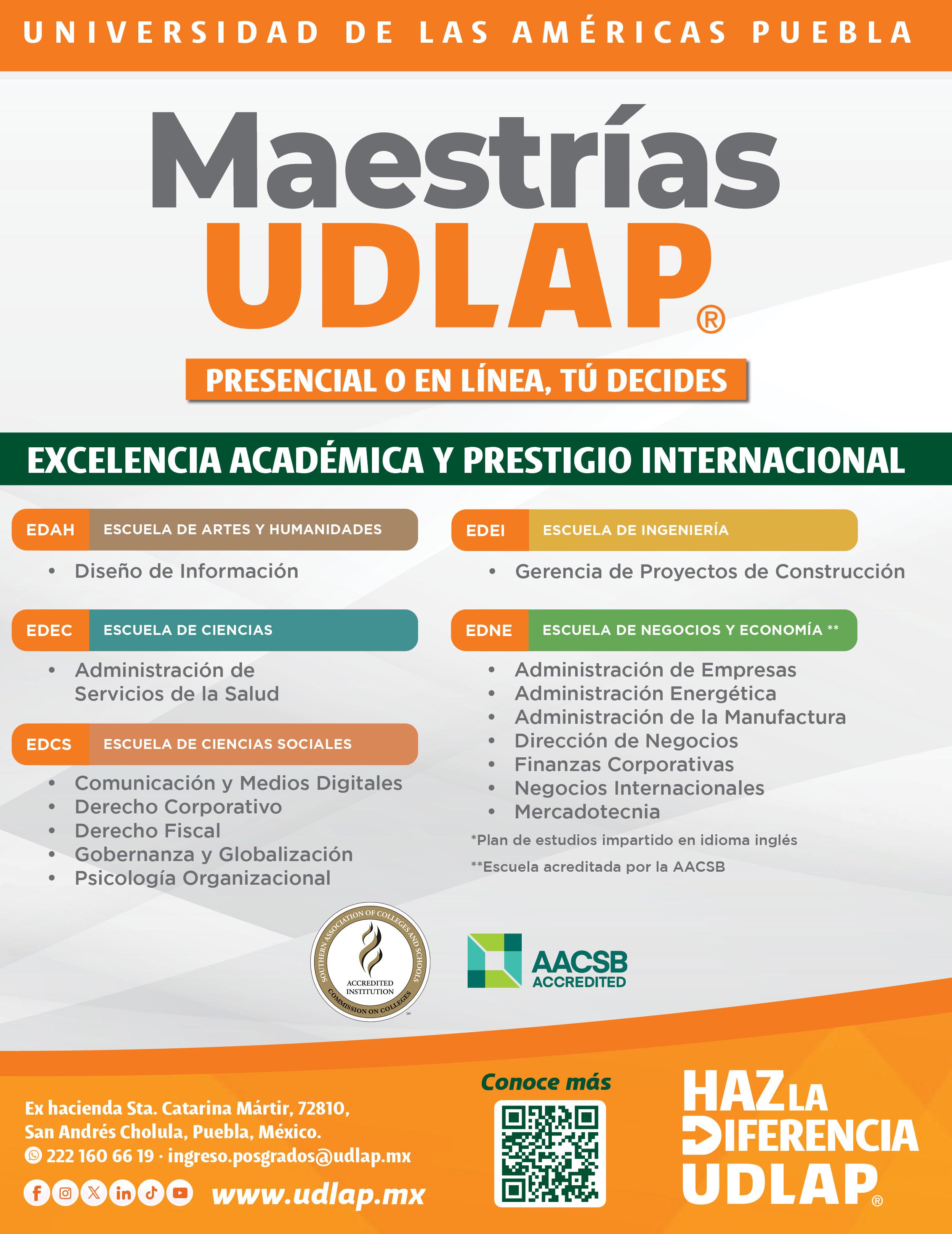 cxn conexión, año 7, núm. 19, 2025, es una publicación trimestral editada por la Fundación Universidad de las Américas, Puebla. Ex hacienda Santa Catarina Mártir s/n, San Andrés Cholula, Puebla, C. P. 72810. Tel. 222 229 20 00. www.udlap.mx, lorena.martinez@udlap.mx. Editora responsable: Lorena Martínez Gómez. Reserva de Derechos al Uso Exclusivo e issn: en trámite, ambos otorgados por el Instituto Nacional del Derecho de Autor. Responsable de la última actualización de este número: Dirección de Proyectos Especiales, Carlos Arturo Alfaro Galán. Fecha de la última modificación: 18 de junio de 2025.