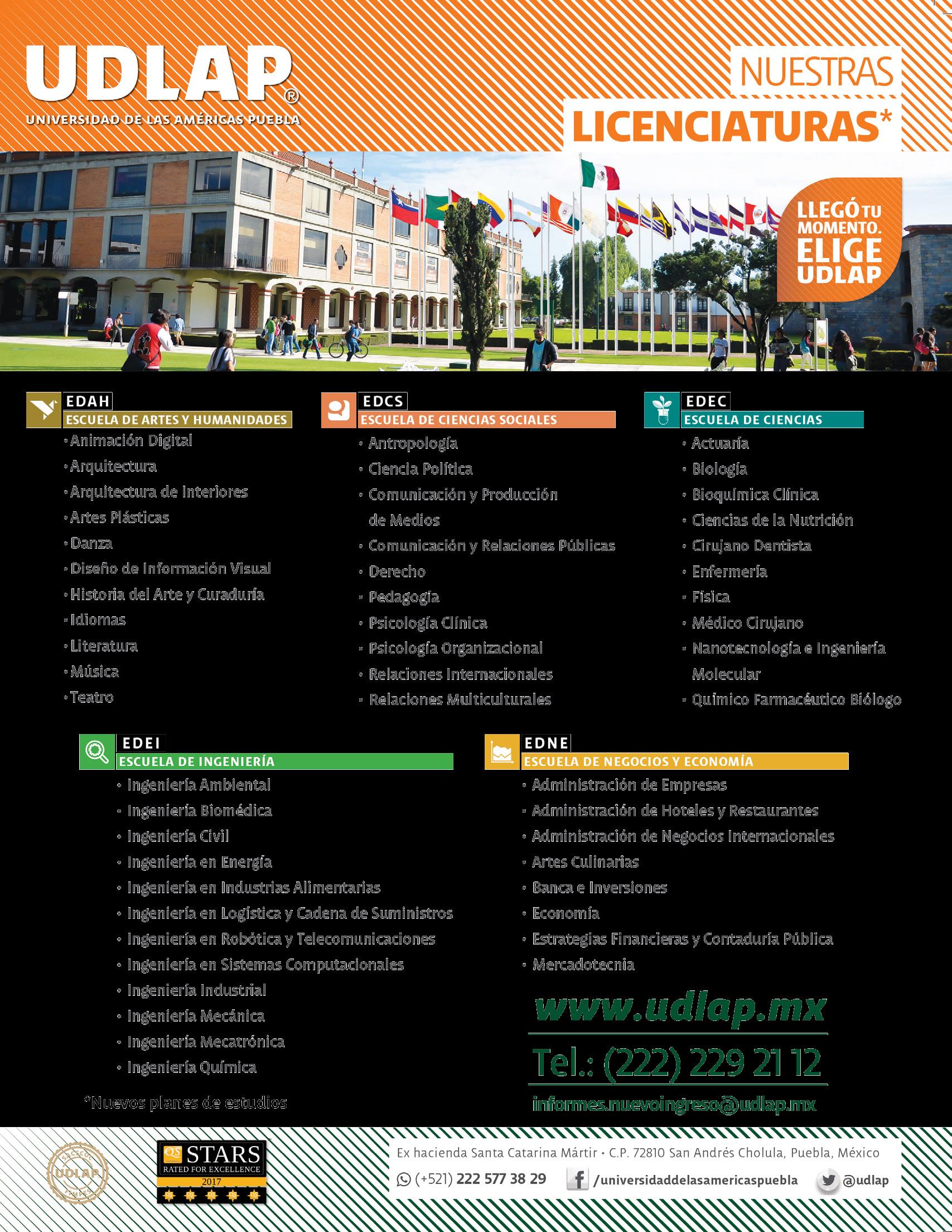 ENTORNO UDLAP, Año 1, núm. 3, septiembre-diciembre 2017, es una publicación cuatrimestral editada por la Fundación Universidad de las Américas, Puebla. Exhacienda Santa Catarina Mártir s/n, San Andrés Cholula, Puebla, C. P. 72810. Tel. (222) 229 20 00. ww.udlap.mx, revista.entornoudlap@ udlap.mx. Editor responsable: Polioptro Fortunato Martínez Austria. Reserva de Derechos al Uso Exclusivo núm. 04-2016091418231700-102, ISSN: en trámite, ambos otorgados por el Instituto Nacional del Derecho de Autor. Responsable de la última actualización de este número: Escuela de Ingeniería, Polioptro Fortunato Martínez, Exhacienda Santa Catarina Mártir s/n, San Andrés Cholula, Puebla, C. P. 72810. Fecha de última modificación: 1 de septiembre de 2017.