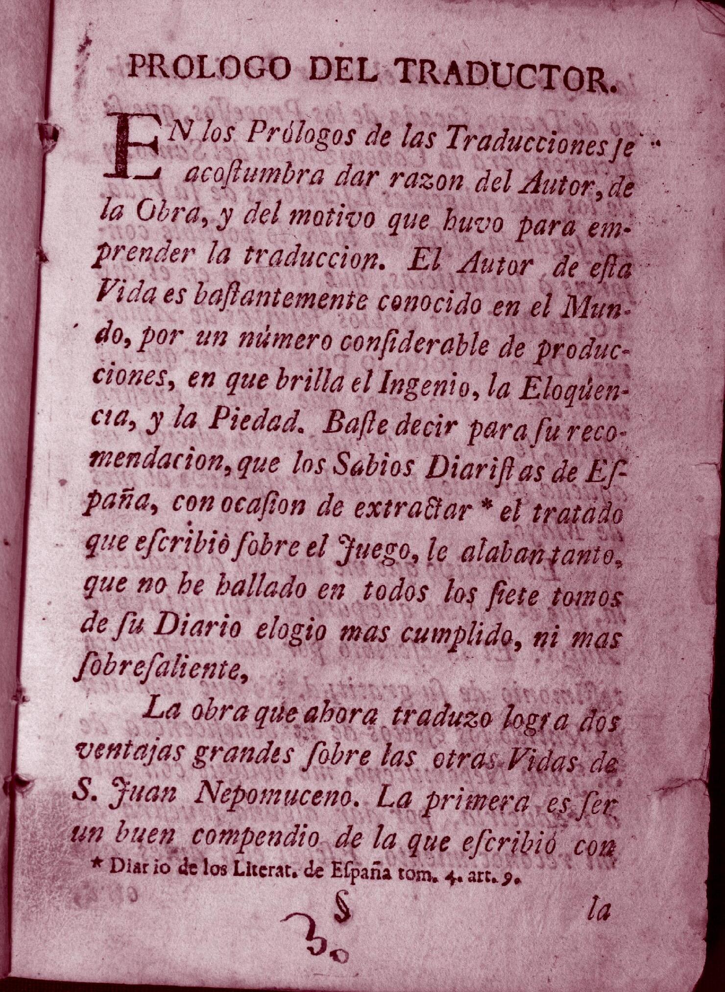 Figura 24. Ejemplo de prólogo de traductor. Compendio de la vida, muerte y milagros de San Juan Nepomuceno