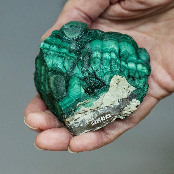 Art conservation and chemistry students visited the Mineralogical Museum as part of their classes during the fall 2021 and spring 2022 semesters for unique, hands-on learning opportunities. Through close observation of minerals within the class, the 31 students examined pigment materials, explored what controls color in minerals and artworks, and examined real-life examples of the deterioration process to enhance their larger research projects.