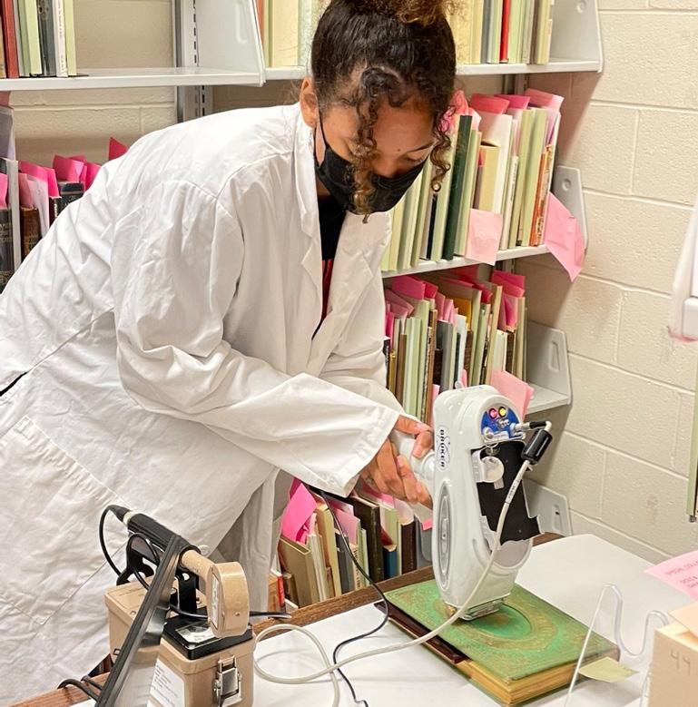 Right: A Winterthur intern conducting XRF scanning on materials in Special Collections.