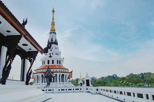 Here you will find a large, marble, reclining Buddha statue, approximately 20 meters long. The cost for the temple complex, 320 million baht, was donated by a woman who believed that she saw a profile of the Reclining Buddha in the shapes of the mountain ridges, and was inspired by it. The temple is located in a thousand rai forest.