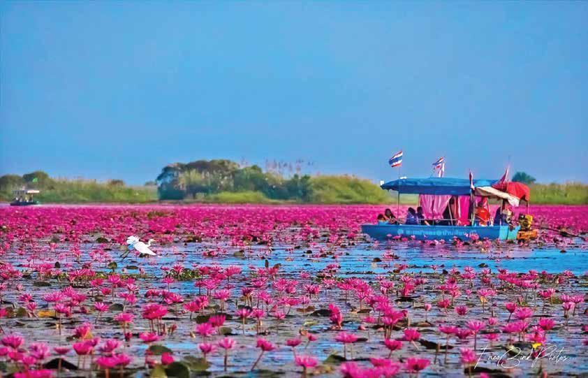 The Red Lotus Lake is about 45 minutes by car from Udon city to Baan Diam Piar, the most popular tourist spot. The lotus plants will bloom between December and March of each year. The plants bloom from the early morning until