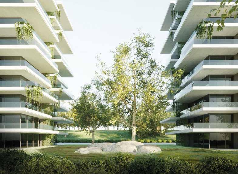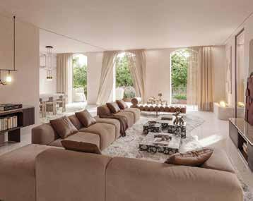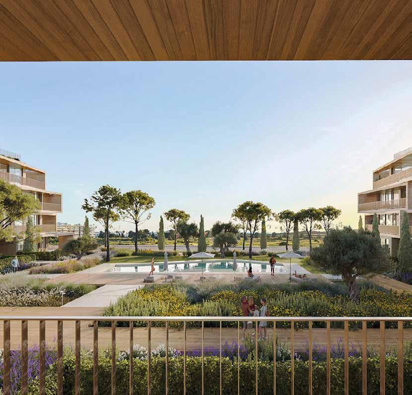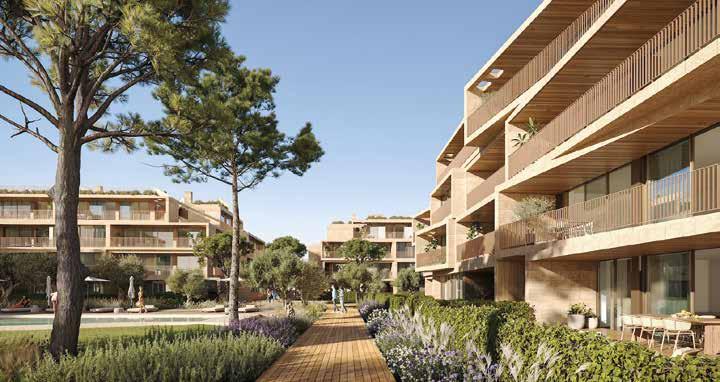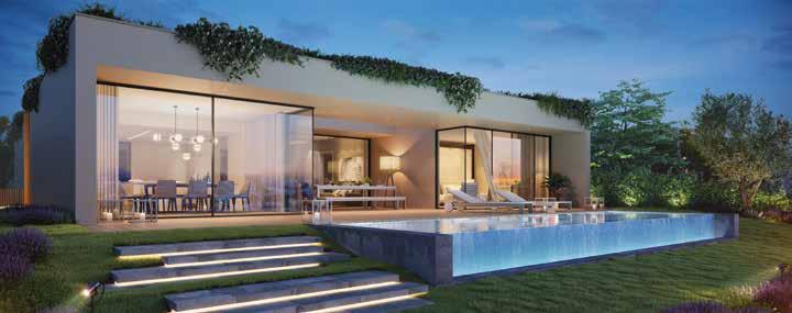 Villas and apartments with different number of bedrooms, surrounded by extensive private and communal green spaces.