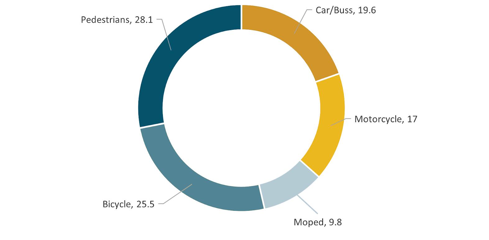 Figure 4.13: Proportion of people who were injured/killed by different means of transport, (Trondheim Kommune, 2020b)