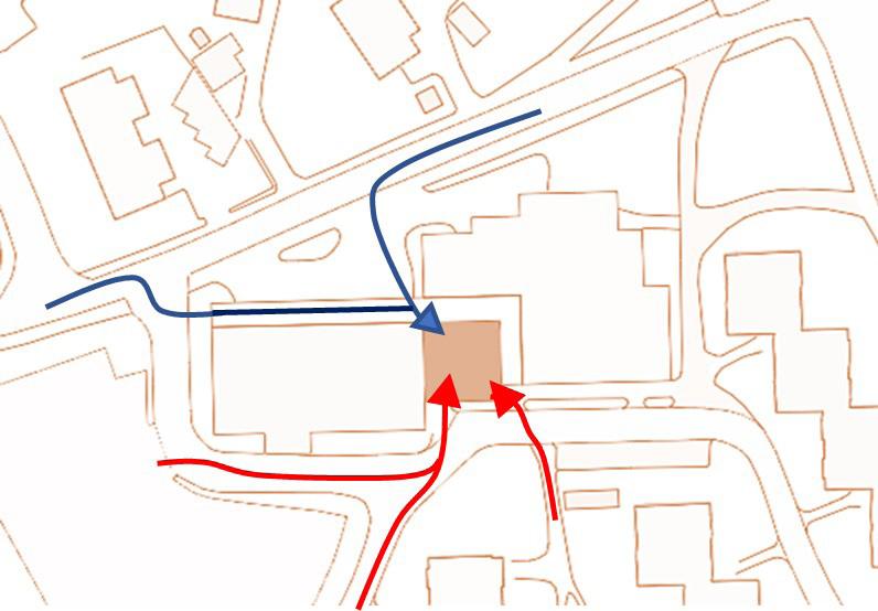 If the movements of vehicles are restricted in the area ex cept for the two-wheelers, the traffic congestion would be minimized at a significant amount. Since the road is nar row, the four-wheelers are difficult to pass through. Thus, for the four-wheelers, an alternative route is proposed (fig 116). And the road is accessible only for the two-wheelers. However, the large vehicles or the four-wheelers will be made accessible during a certain period which is before 8 am and after 8 pm.