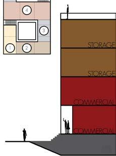 In both prototypes, the sanitation block has two entrances being one for each gender. The major difference between the prototypes is where the staircase to the shower area is placed. In Prototype 1 the stairs are inside each gender’s compartment.