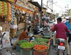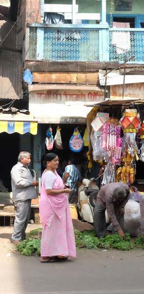 Shops are mostly open from 9 am to 8 pm every day except for Sundays, when most shop owners take the day off – an irony, knowing that the meaning of Raviwar Peth is ‘‘Sunday market’’. The presence and activities of street vendors is evident, and functions as an organic market. Their activities differ in terms of location and the nature of goods traded. Some vendors are stationed at specific places, usually where the traffic is high, while others move around the streets with their products in baskets, pushcarts or tricycles. Those who sell fruits and vegetables work during the day and, in the evening, street food sellers are more active. The nature of goods traded also changes when festivals approach: specific decoration items for each festivity are sold