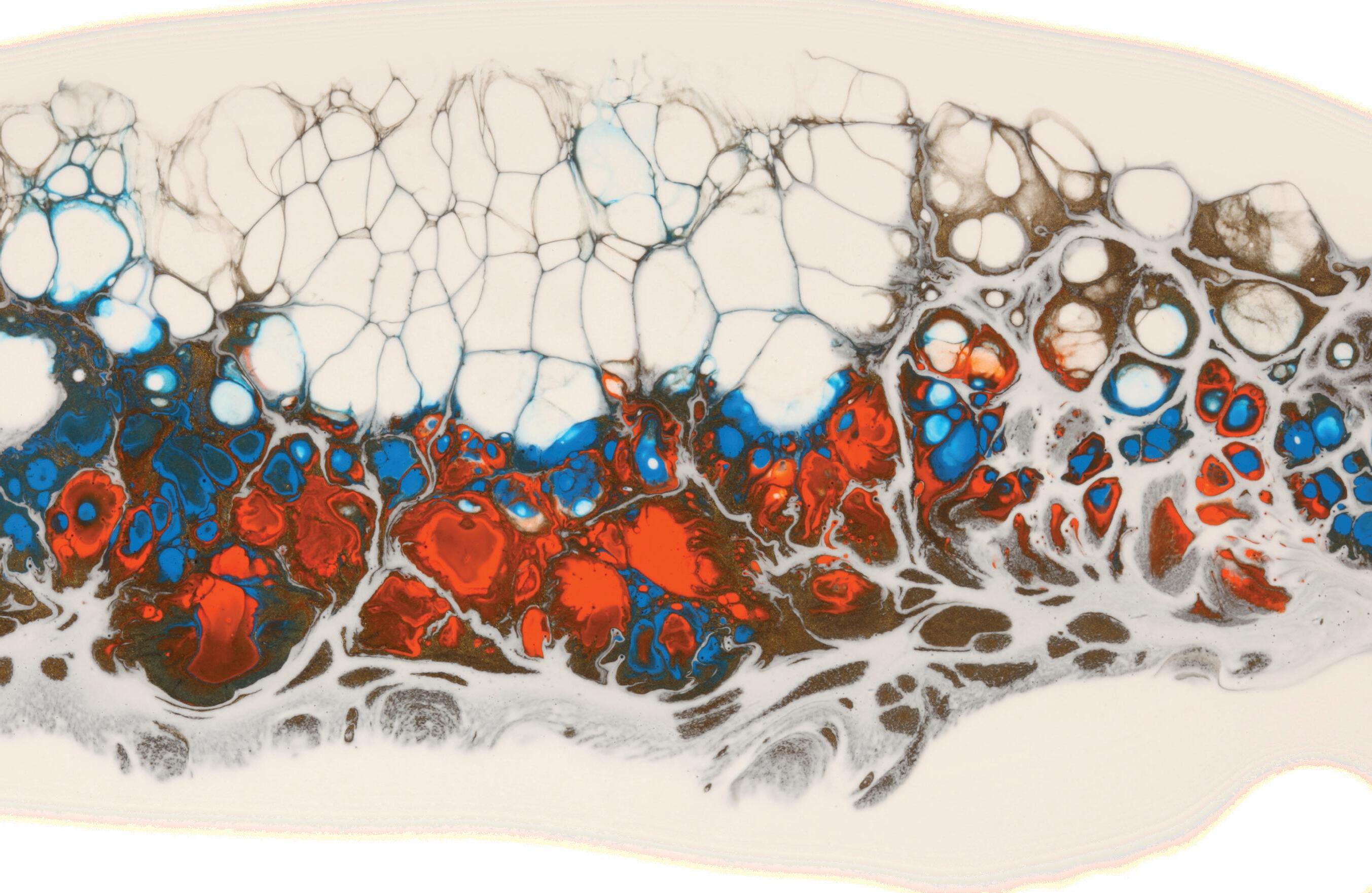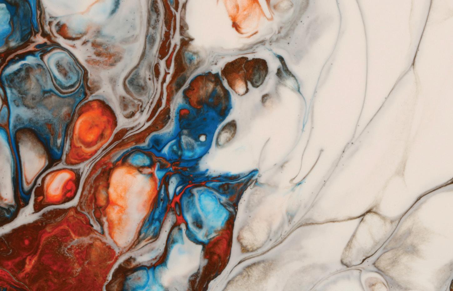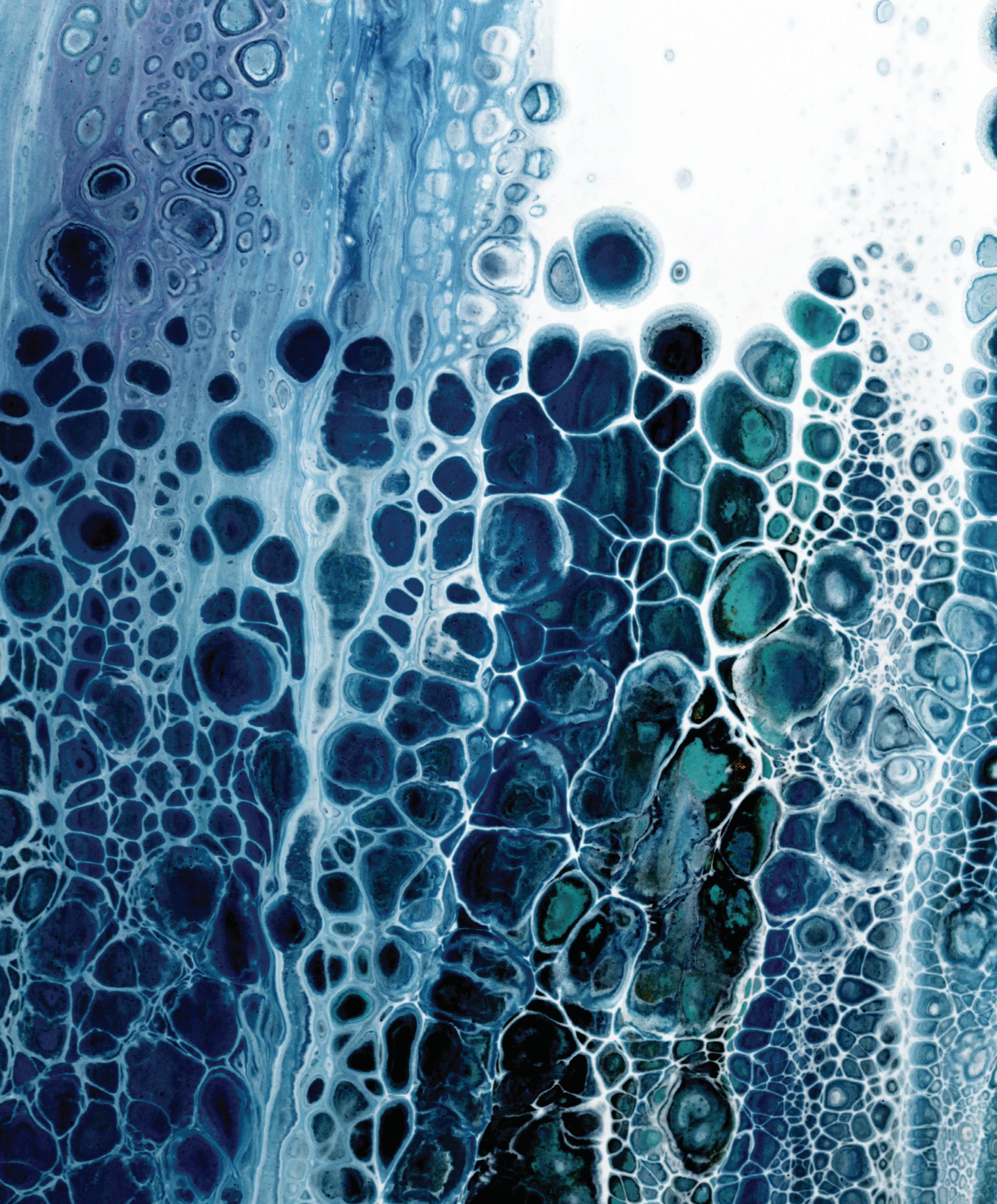 The university’s connection to water comes to life as abstract water elements double as alligator skin. Design by Kathleen Martin. Marble Texture. © Liliia/Adobe Stock.