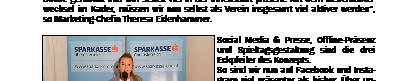 Mit dem „UFG Team Talk“ mit Moderato-rin Petra Kitzinger wurde auch ein wö-chentliches Online-Videomagazin gestar-tet. Auch in der Innenstadt werden wir künftig wieder sichtbarer sein. Das Marketing-Team umfasst die Bereiche Social Medi-a, Offline-Bewerbung, Fotografen, Vor- und Nachberichterstat-