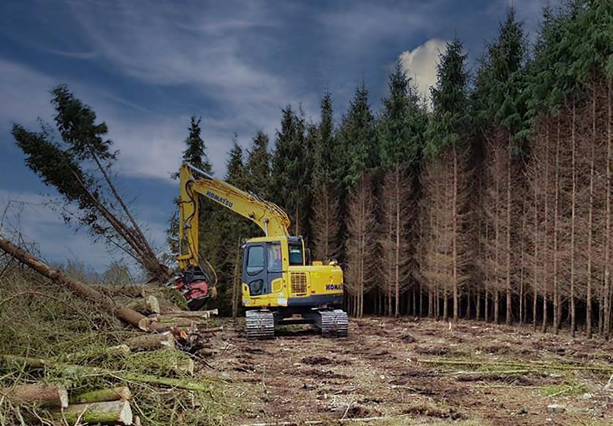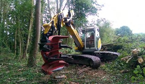 En maskin, tre funktioner, röjning av buskar och träd, samt underhåll av skogsområden.
