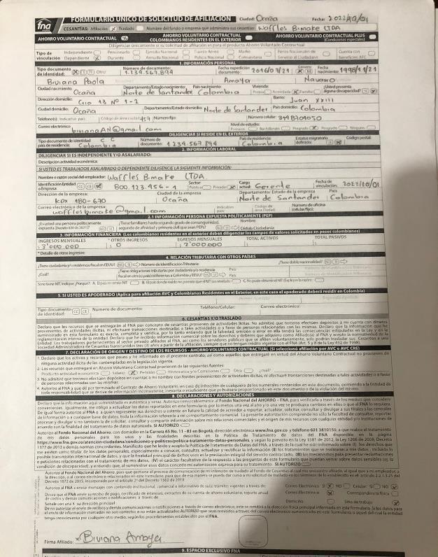 BIVIANA PAOLA AMAYA NAVARRO identificada con la Cédula de Ciudadanía No 1.004.898.7141.234.567.894 de Ocaña, Norte De Santander
