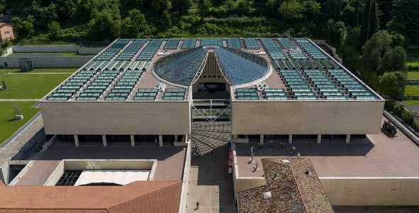 Nel cuore del meraviglioso Trentino, inca stonato tra palazzi del XVIII secolo, il mart di Rovereto è la prima struttura italiana del nuovo millennio realizzata per essere un polo culturale, un’agorà delle arti e dei saperi. Disegnata dall’archistar svizzeramario Bot ta la piazza circolare del mart è allo stesso tempo un’icona della contemporaneità e un omaggio alle forme classiche: le dimensio ni della cupola sono quelle del Pantheon di Roma e la fontana posta al centro rimanda all’impluvium per la raccolta delle acque pio vane delle ville romane.