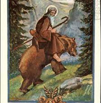 Il culto di Romedio “che viene spesso raffi gurato con un orso quale sua cavalcatura” è stato confermato nel 1907 da Pio X. La leggenda racconta che San Romedio de