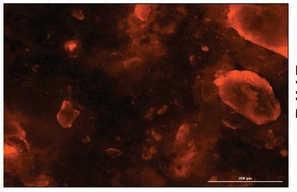A 0.1% XO solution was added by volume and incubated overnight (at 37° C and 5% CO2). Once the models were ready for viewing, the XO stain was aspirated, and the scaffolds were rinsed with Dulbecco’s Phosphate Buffered Saline (PBS) before viewing. Calcium deposits were viewed and imaged under a TRITC filter at 10× magnification.