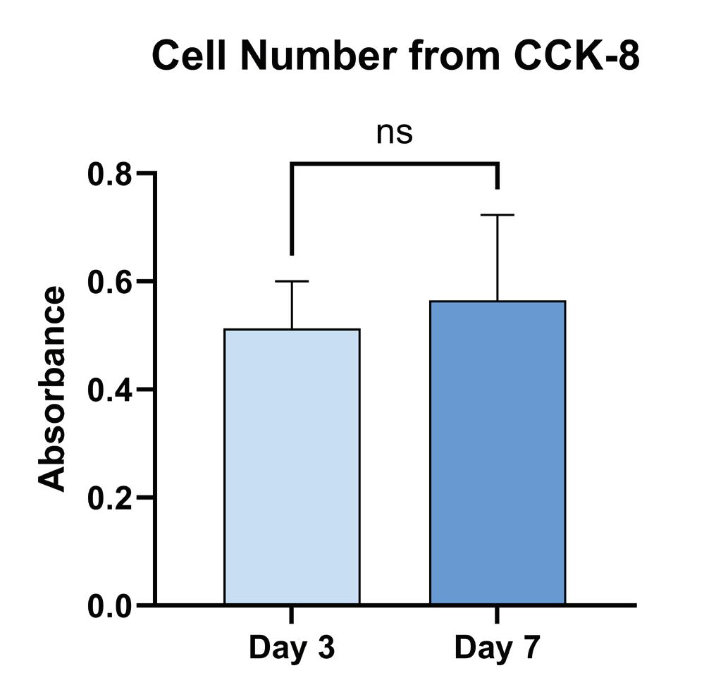 Fig. 9. Cell Counting Kit-8 was used to quantify the relative number of bone cells within the bone model during the 7 days of differentiation. No significant increase is observed.
