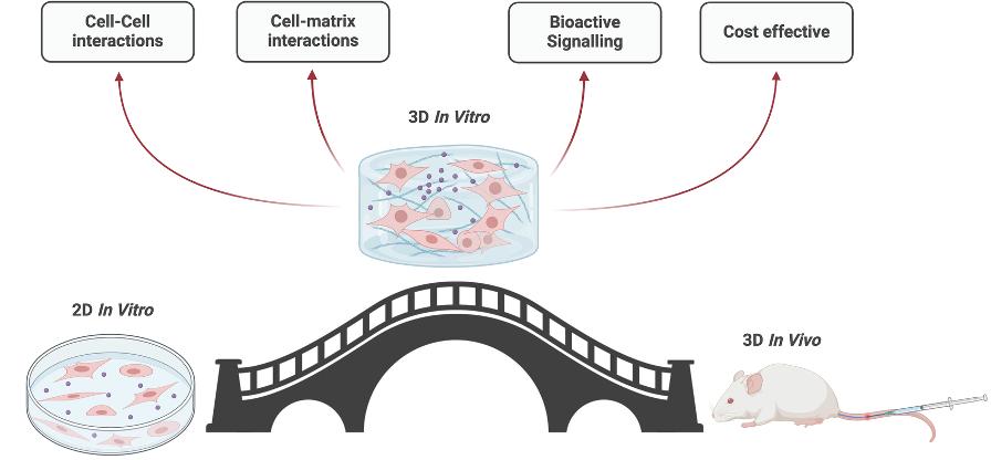 in vitro models (see Fig. 3). The development of 3D in vitro models would minimize the need for animal testing, decrease the cost per model, address ethical concerns, and provide a better understanding of experimental outcomes before moving to clinical trials.